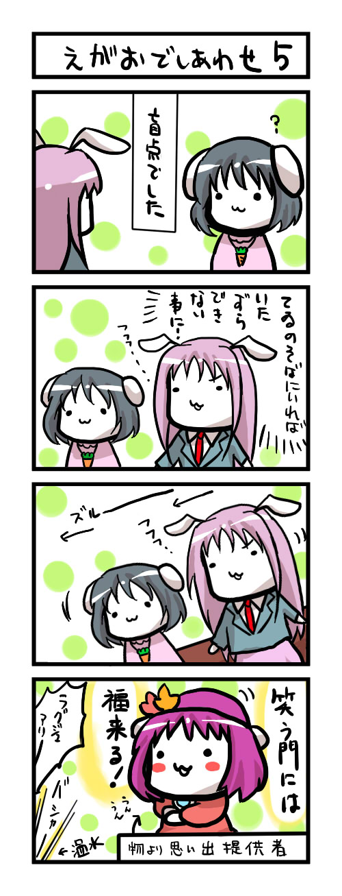 えがおでしあわせシリーズも五周年!!こういう恒例行事はほっこり笑顔になれていいですね♪ありがとうてゐ!!(・ω・)ありがとううどんげ!!!!