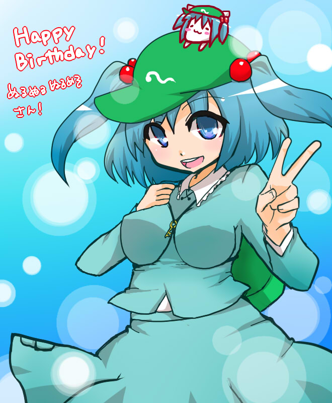 わーまさか今年も祝っていただけるとはっ(´w`*)元気な感じなにとりちゃん可愛いですにとりちゃんっ 頭に乗ってるこねこにとりちゃんも癒されますー ありがとうございましたー!